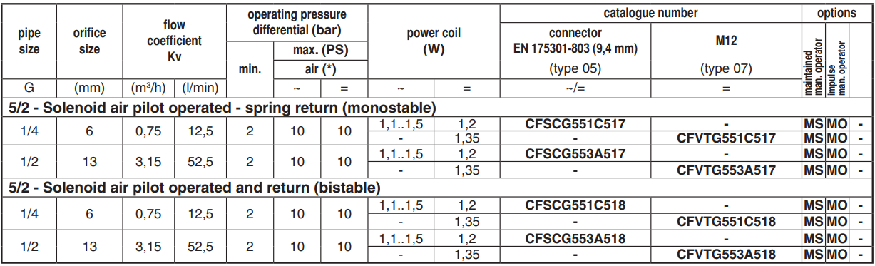 • Solenoid pilot valve with spade-plug connector type EN 175301-803, industry-standard form C, with 9,4 mm spacing. Versions with M12 connection