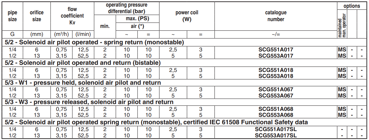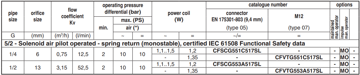 • The monostable spool valves in conformity with IEC 61508 Standard (2010 route 2H version) have TÜV (551 series) and EXIDA (551-553 series) certified with integrity levels:                      SIL 2 for HFT = 0 / SIL 3 for HFT = 1