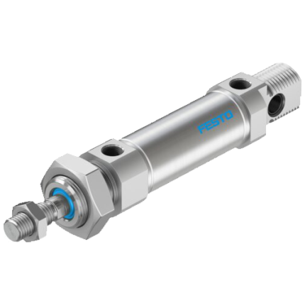 The Festo DSNU-25-25-P-A (Part No. 19219) is a 25mm bore, 25mm stroke, double-acting stainless steel ISO 6432 round cylinder designed